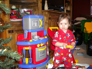 Now...for OUR Christmas...Santa got the kids WAY too much...but they seem to like it! Cole got a John Deere Gator. He likes it! If the snow & ice will ever melt, we'll have a lot of fun with it! Natalie got a lot of dolls and other girlie things. They also got Pottery Barn Chairs from their Mimi & Papa. I don't have many good pics because I let my parents take the pictures...and they forgot to download them to my computer...